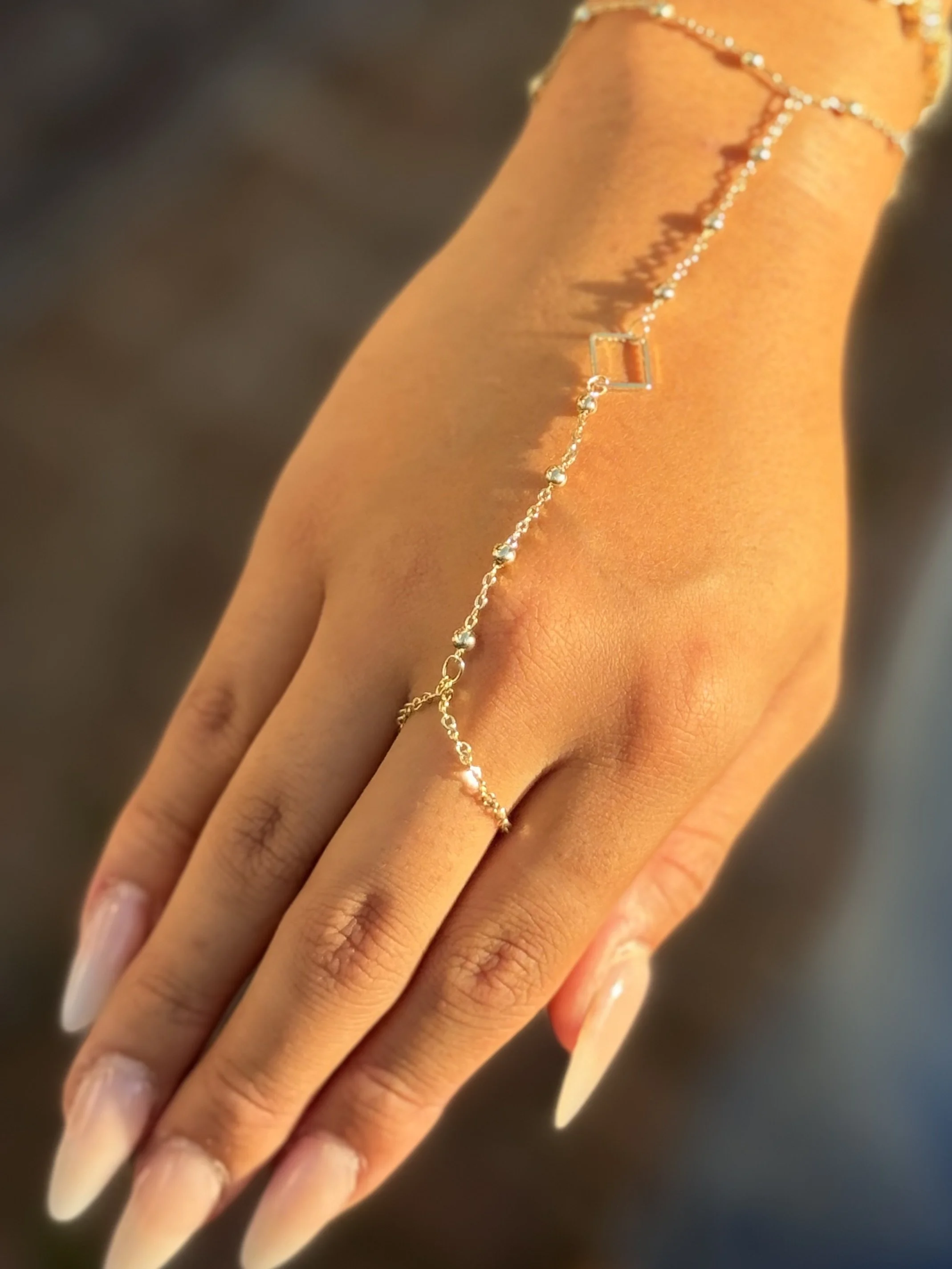 Categories: Select a Category Ring Chains Earrings Bracelets Hair Accessories Necklaces Rectangle gold Ring Chain Bracelet £14.00